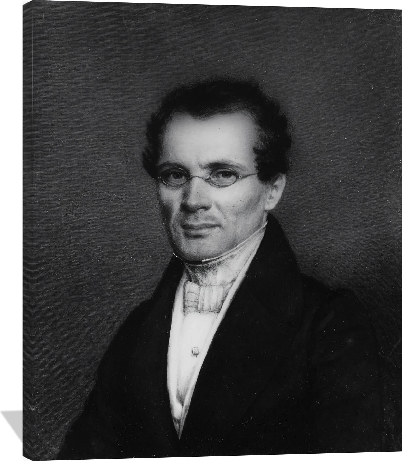The Alvan Clark Dr. Samuel A. Bemis canvas captures the quiet dignity and intellect of its subject through masterful use of light and shadow. Subtle tones of charcoal, ivory, and soft gray create a refined, timeless portrait that embodies 19th-century elegance. Clark’s precise brushwork and delicate contrasts draw the viewer into a moment of introspection and poise.