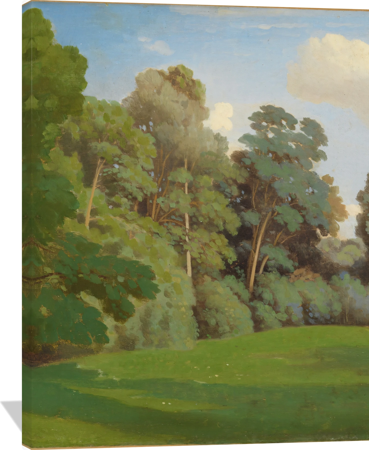 The Théodore Caruelle d’Aligny Edge of a Wood canvas captures the serene harmony of nature with lush green foliage, soft earth tones, and a tranquil blue sky. This peaceful landscape evokes the quiet beauty of the French countryside, inviting a sense of calm and balance into any space.