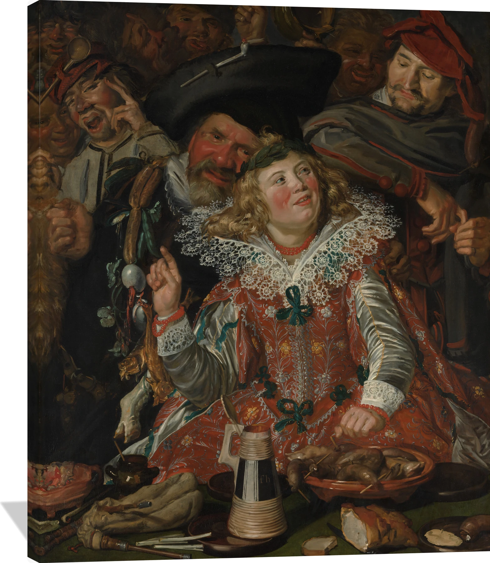 The Frans Hals Merrymakers at Shrovetide canvas captures the exuberant spirit of Dutch Golden Age festivity with masterful energy and color. Lively figures in rich reds, earthy browns, and deep greens revel in laughter and indulgence, their expressions rendered with Hals’s signature vitality and fluid brushwork. The warm tones and dynamic composition infuse any space with a sense of joy and human connection.