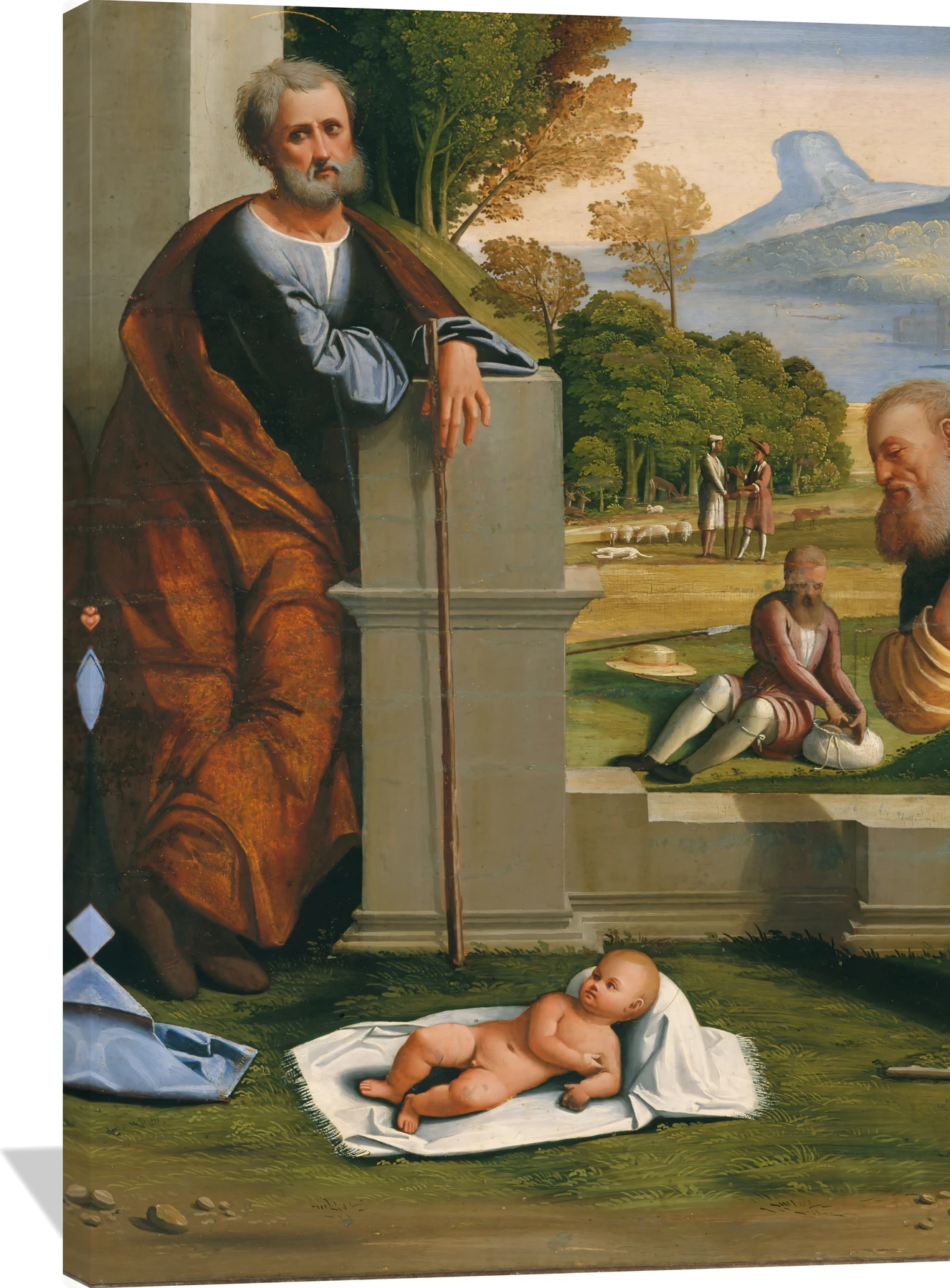 The L’Ortolano The Adoration of the Shepherds canvas captures a moment of serene devotion bathed in soft golden light. With its harmonious blend of warm ochres, tranquil blues, and lush greens, this Renaissance masterpiece radiates calm reverence and timeless grace. The balanced composition and luminous detail invite quiet reflection, making it a captivating focal point for any space.